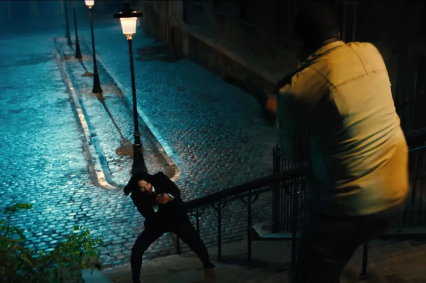 Mais surtout, probablement le passage le plus spectaculaire de l’œuvre, la montée des escaliers de Montmartre pour atteindre le Sacré-Cœur. Je ne verrai plus ces escaliers de la même manière après ce film. Alors que la prime sur sa tête monte, John est poursuivi par une ribambelle de tueurs alors qu’il grimpe les 222 marches des escaliers. On va le voir lutter et être amené dans ses plus profonds retranchements pour venir à bout de cette armée d’ennemis.