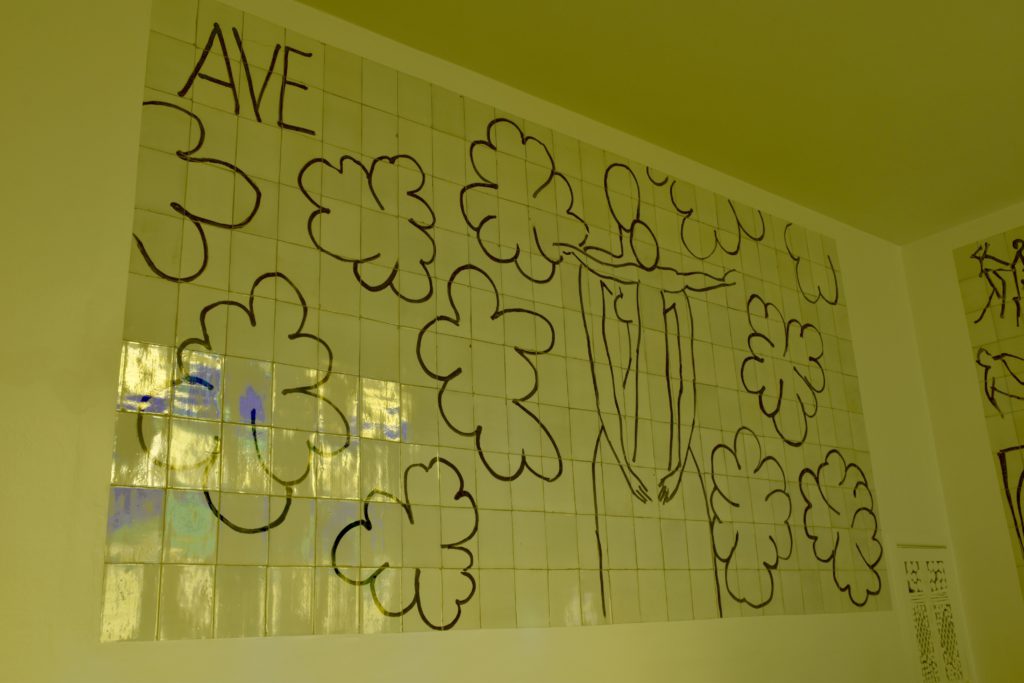 A l’intérieur, tandis que trois pans ornés de vitraux font surgir des flots de lumière teintée, les trois autres pans sont sobrement décorés à l’émail noir sur des carreaux de céramique blanche : les 14 étapes d’un chemin de croix, les unes enchevêtrées dans les autres, autour d’un Christ en croix, un saint Dominique plus grand que nature et une vierge à l’enfant. Tout n’est donc, définitivement, dans cet univers, selon la volonté de Matisse, que traits et couleurs. Les couleurs sont pures, chaudes, essentielles, et méditerranéennes : le jaune des citrons, le vert émeraude de la nature, le bleu outremer transparent du ciel et des flots.